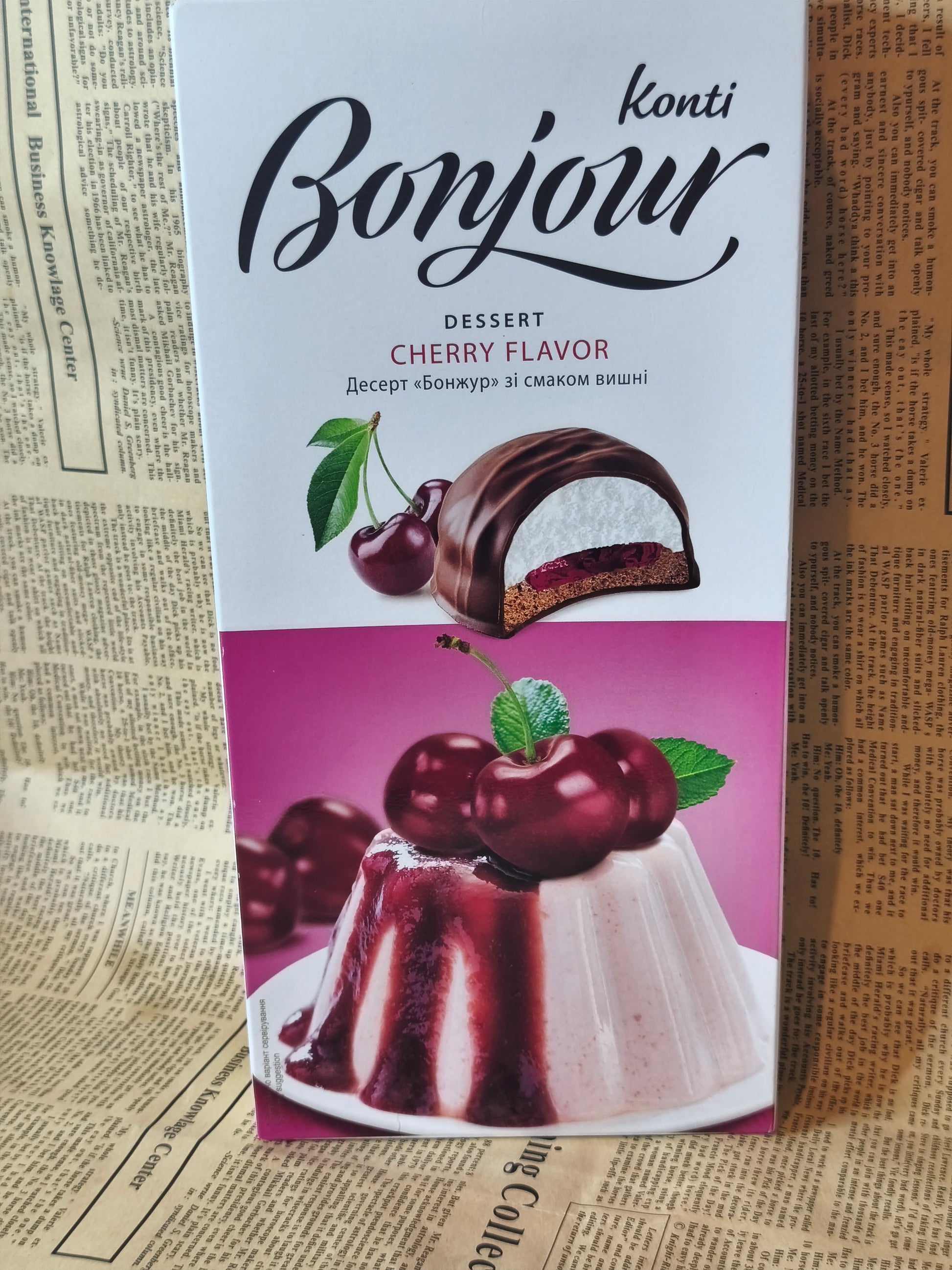 Десерт - Бонжур, зі смаком вишні, Konti, 232 г Ціна не включає 20% обов'язкового пожертвування на Парасольку. Пожертвування потрібно додати під час оформлення замовлення. Дякуємо за вашу підтримку!